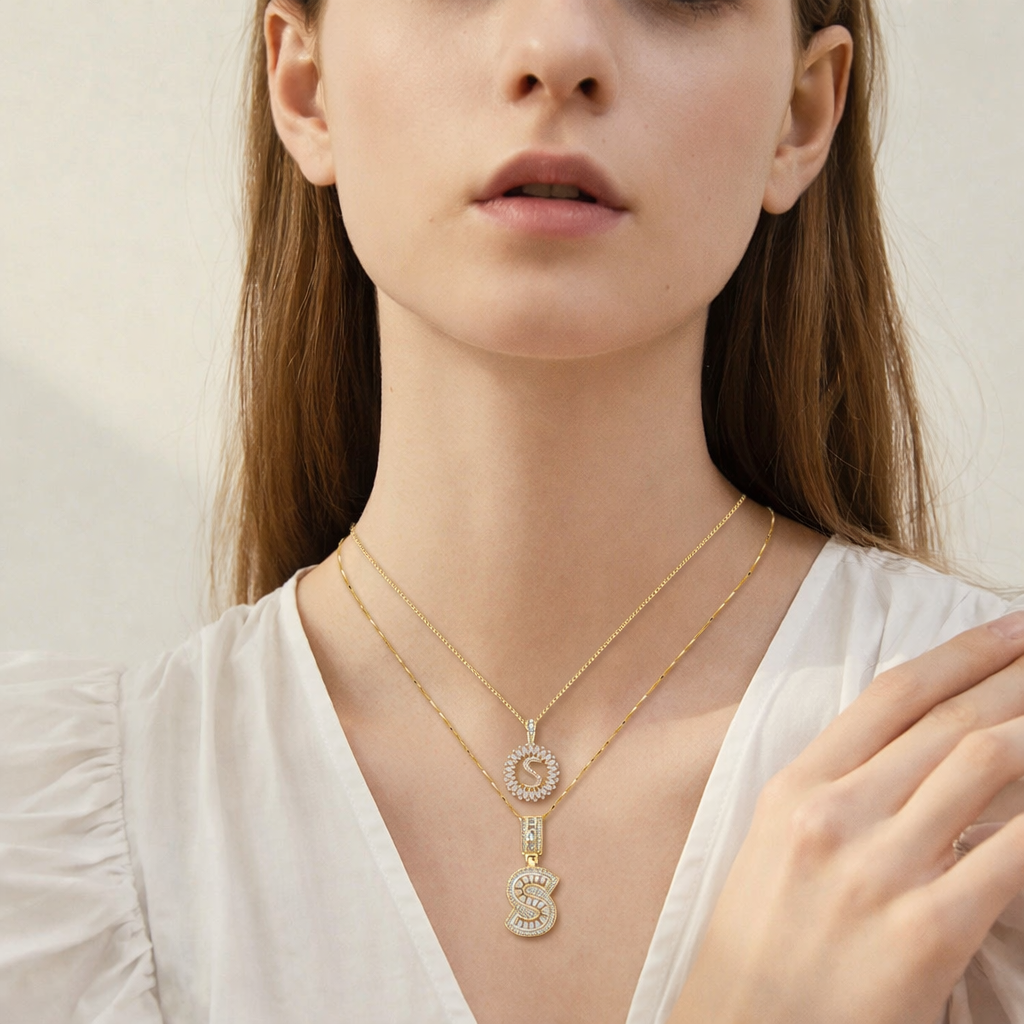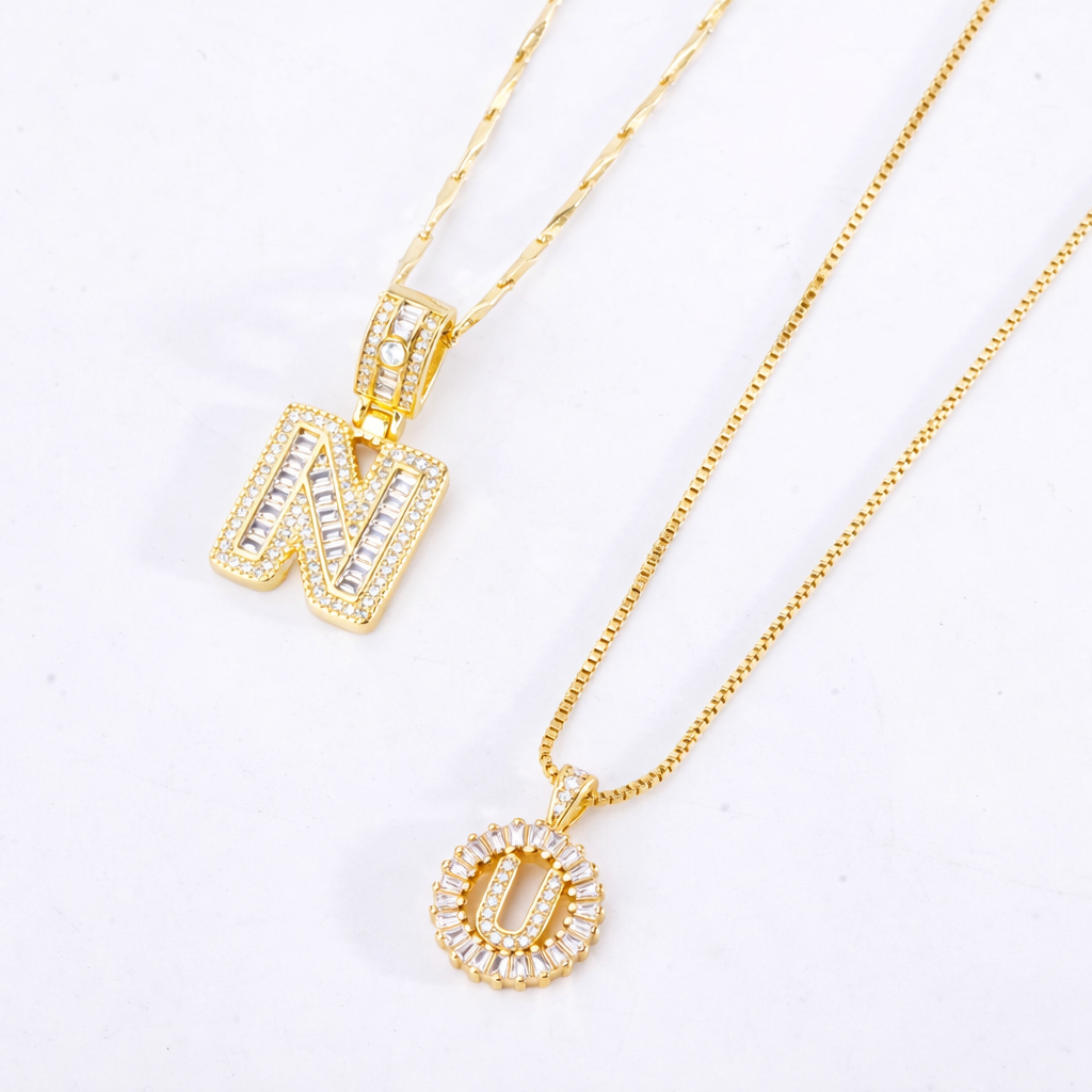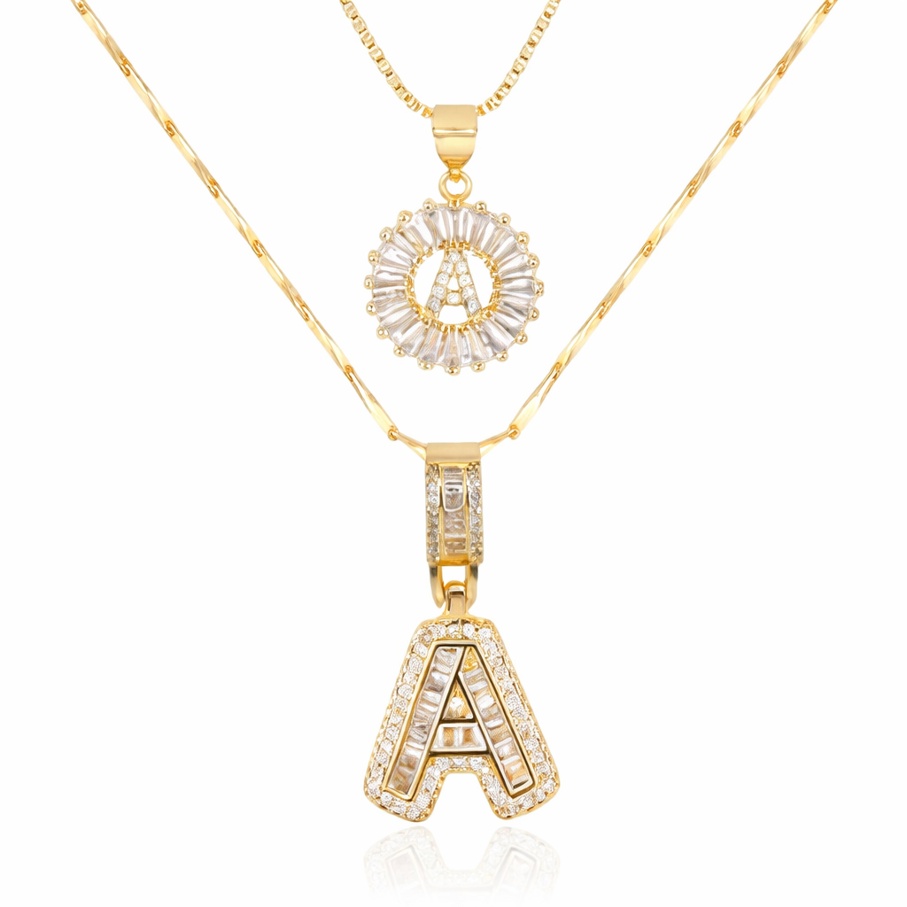Premium Pavé Initial Necklace Set | Personalized Style
